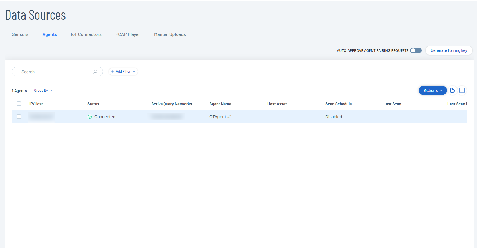 Accédez à l'onglet Sources de données > Agents dans OT Security.