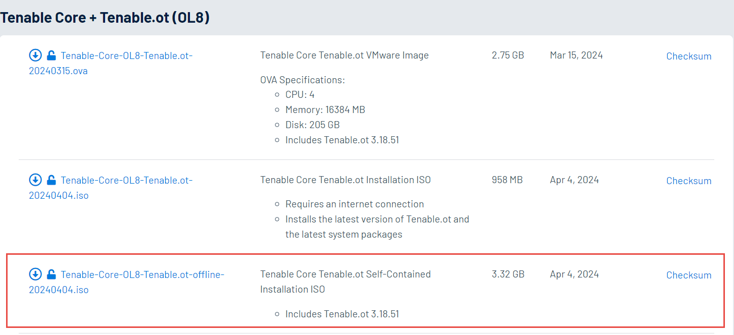 Téléchargez le dernier fichier ISO hors ligne à partir des téléchargements Tenable.