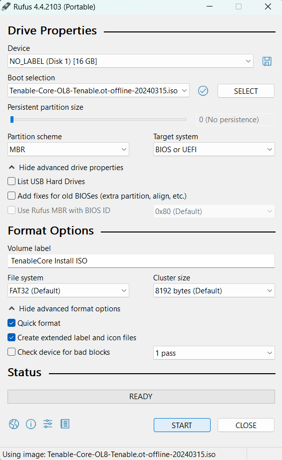 Pour installer le fichier ISO Tenable Core + OT Security :