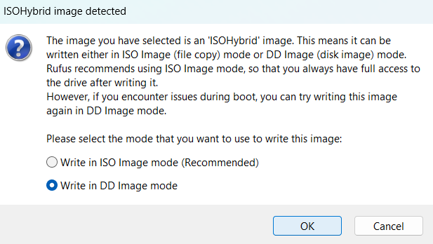 Branchez le lecteur USB sur un PC et flashez l'ISO sur le lecteur flash en mode DD.