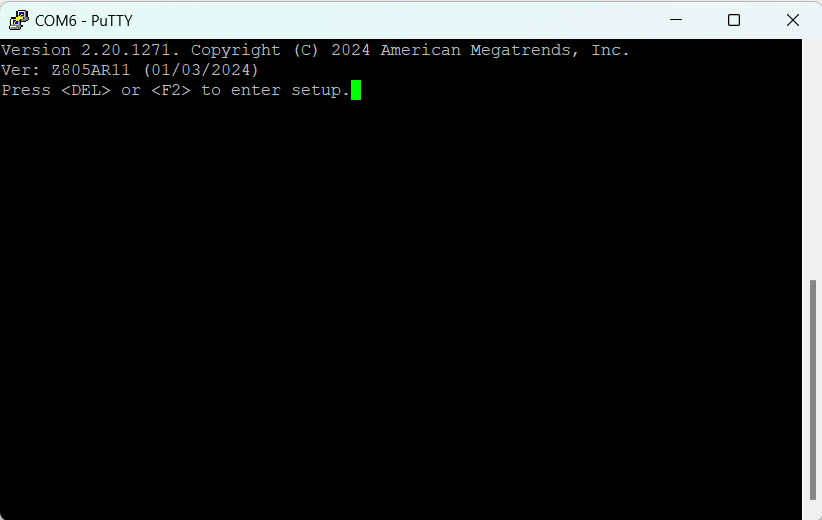 Connectez-vous à l'appliance via l'interface série de la console (débit en bauds de 115 200 bits/s avec une configuration 8N1) et mettez-la sous tension.