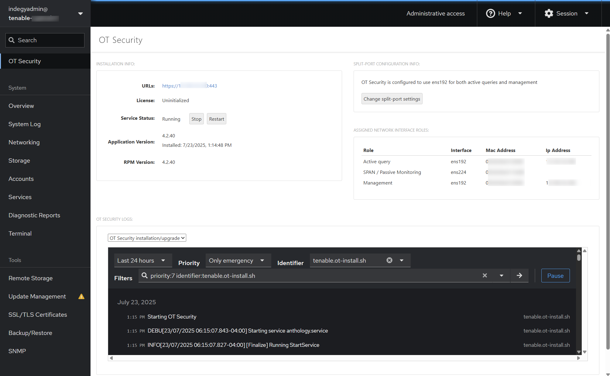 Remarque : sur les machines virtuelles et le matériel non fourni par Tenable, vous êtes invité à installer OT Security. -