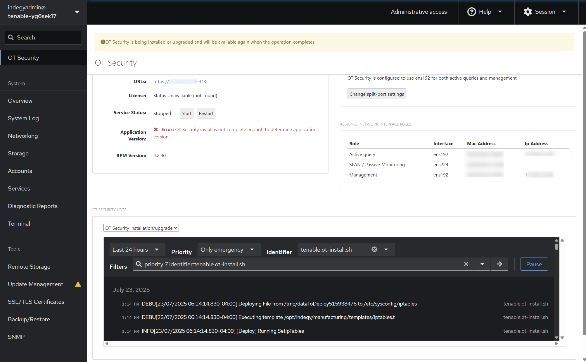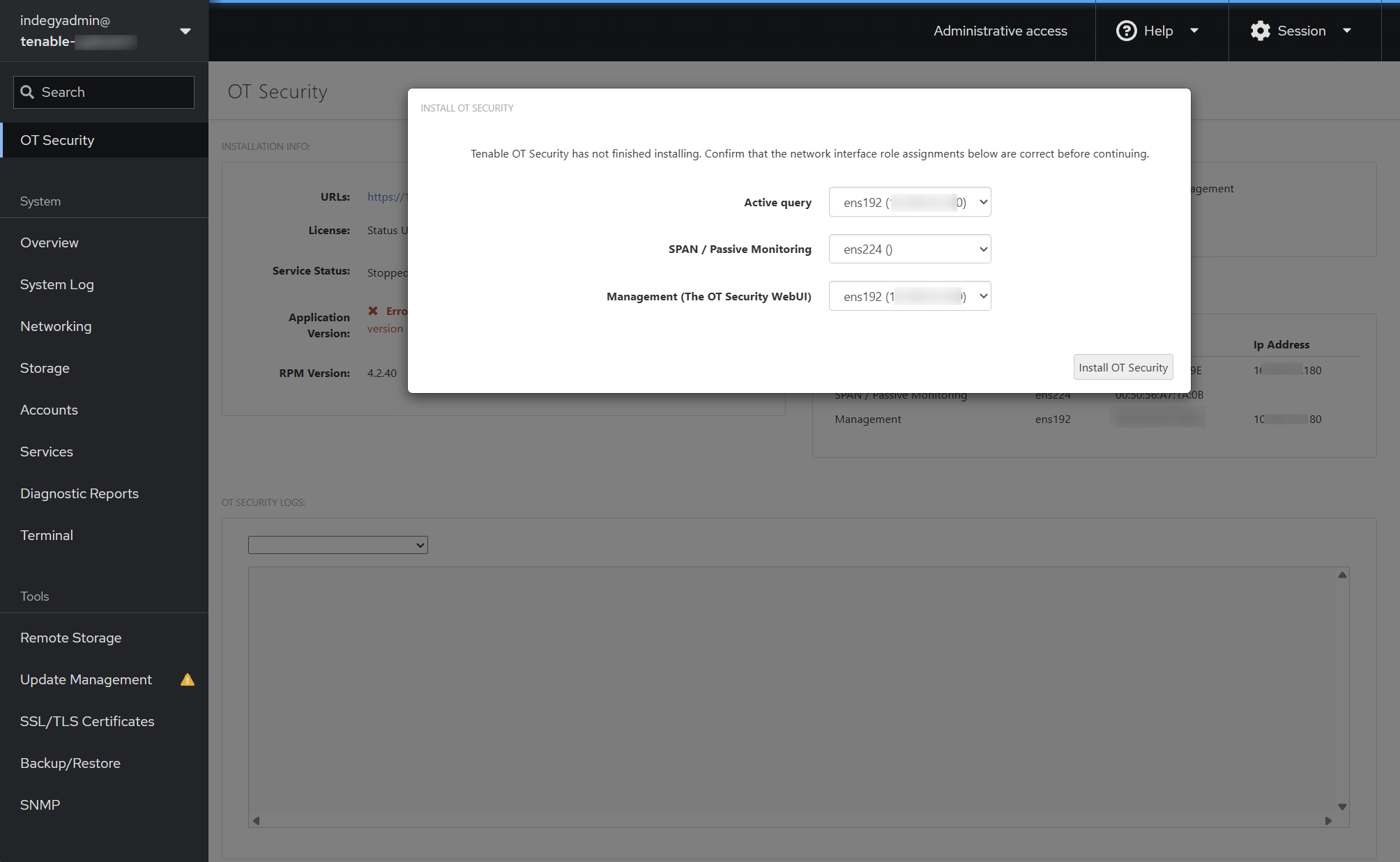 Cliquez sur Install Tenable OT Security (Installer Tenable OT Security).