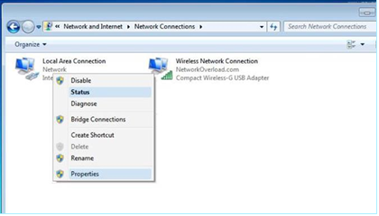 2. Effectuez un clic droit sur Connexions au réseau local et sélectionnez Propriétés.