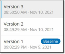 Le tag Base de référence apparaît pour la version sélectionnée, indiquant qu'elle est définie comme version de référence.