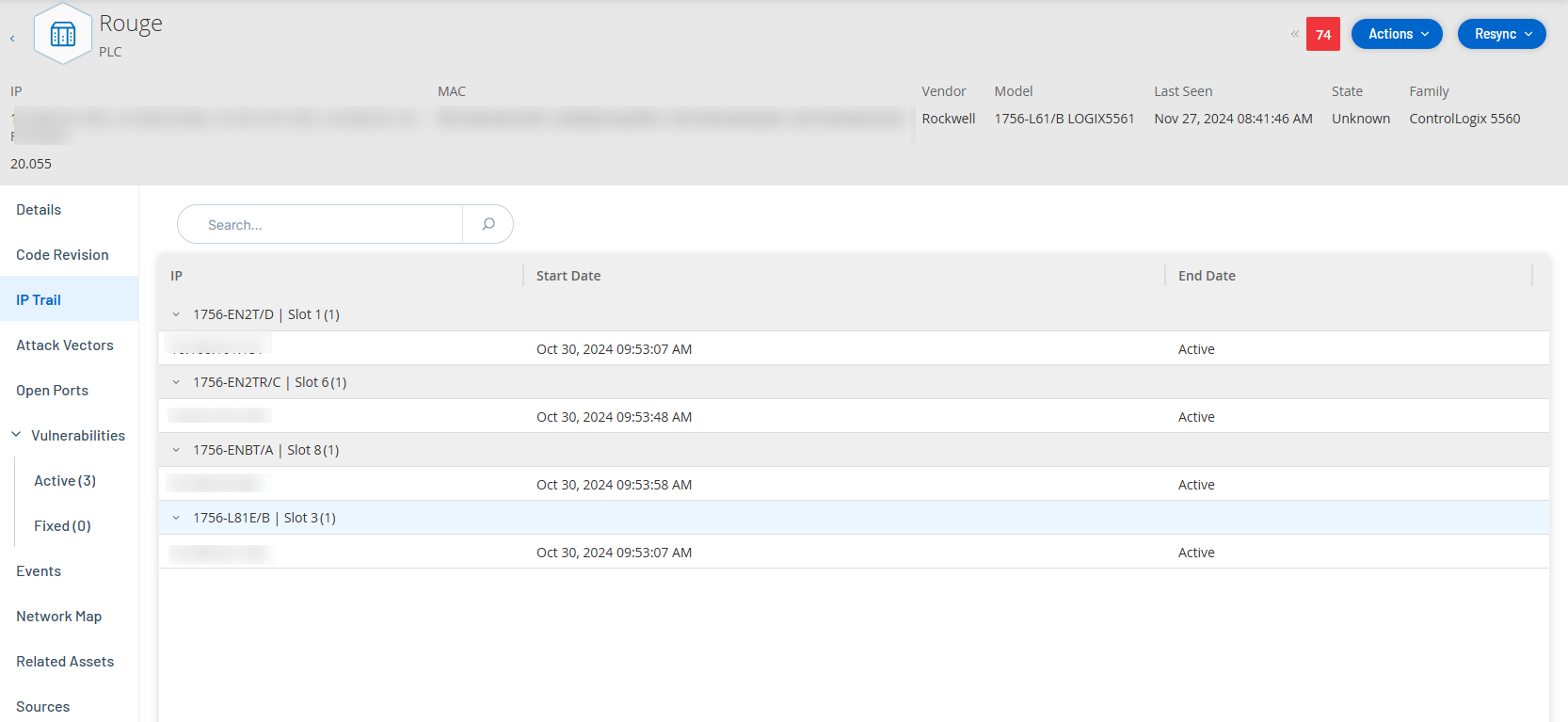 Active – L'adresse IP est actuellement utilisée pour cet asset.