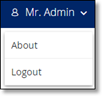 Affiche le nom de l'utilisateur actuellement connecté au système. Cliquez sur la flèche du bas pour afficher les options de menu : À propos (affiche des informations sur le logiciel) et Déconnexion.