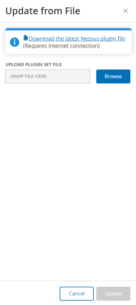 Si vous ne disposez pas d'une connexion Internet sur votre appareil OT Security, vous pouvez mettre à jour manuellement les plug-ins en téléchargeant le dernier ensemble de plug-ins depuis le portail Tenable Community puis en chargeant le fichier.